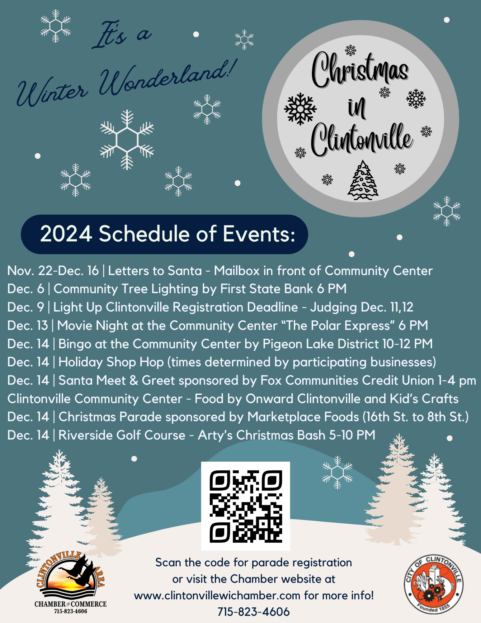 - Parade is December 14, 2024 at 4:30 pm. You may begin lining up on the right hand side of the road at 3:45 pm on 16th St. Parade will go down Main St. to 8th St. Please note line-up is on a first come first served basis. If you need to be done early, please plan to be there early for line-up. There will be no parking in Christus Parking Lot for any floats. This space will be reserved for the band, color guard, mayor, etc. Please enter 16th St. either from the North or South on Industrial Drive, or the East on 16th St. You will follow the person in front of you. If you are helping to set up a float, please do not park on 16th St. Please find a spot on a side street.