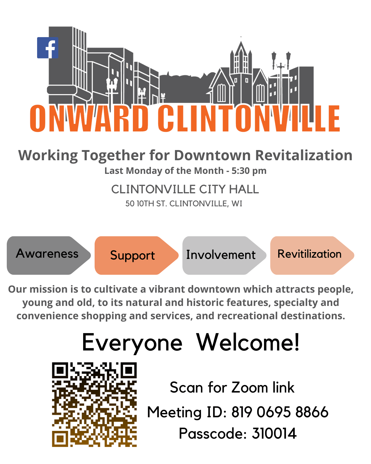 Join us at our monthly meetings the last Monday of every month from 5:30 pm-6:30 pm. Our vision is to cultivate a vibrant downtown which attracts people, young and old, to its natural and historic features, specialty and convenience shopping and services, and recreational destinations. Everyone Welcome!
